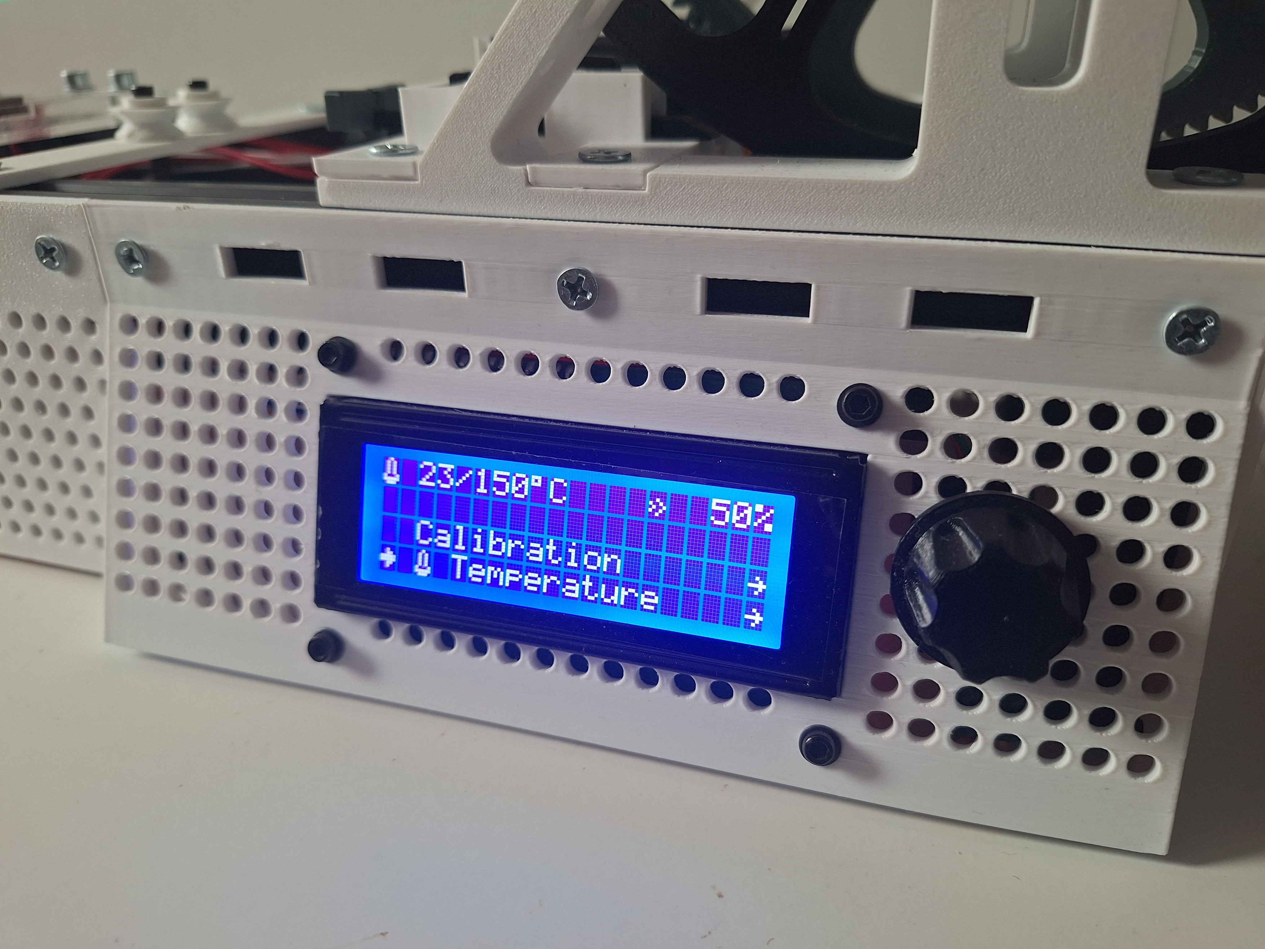 - Ladění: Možnost manuálně měnit citlivost teplotního senzoru, PID konstanty či rychlost motoru za běhu.