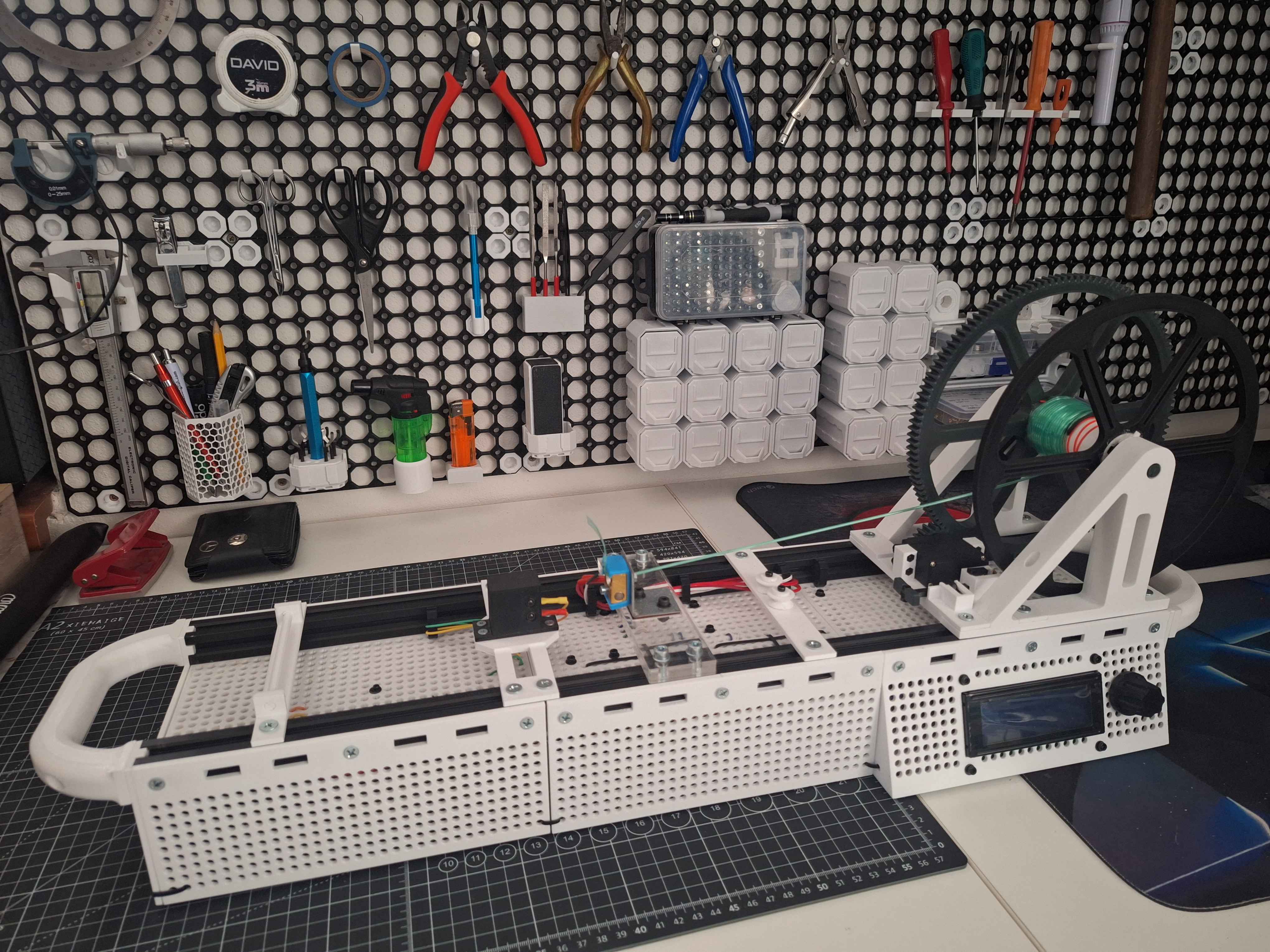 Výsledkem práce je plně funkční zařízení. Po stránce hardwaru a firmwaru je stroj dokončený – podařilo se úspěšně vyřešit mechanickou konstrukci, elektronické řízení i stabilizaci klíčových procesních podmínek. Regulace teploty tavení i udržování konstantní rychlosti pultruze jsou nyní na stroji stabilní a bezproblémové.