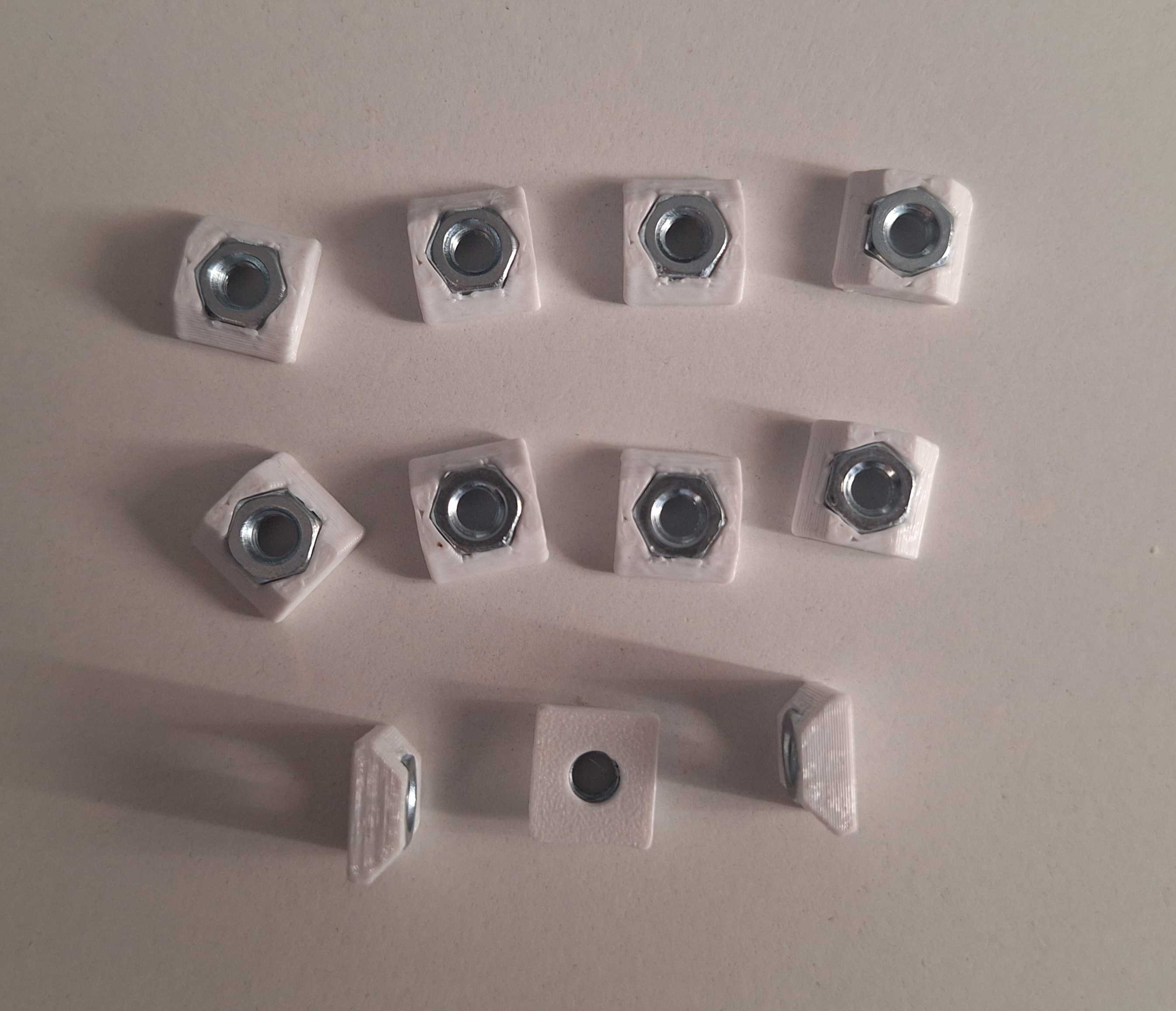Naopak strukturální prvky, jako jsou ochranné mřížky elektroniky a madla, jsou upevněny pomocí standardních vložných matic. Ty zajišťují maximální pevnost a tuhost celého rámu, ale pro demontáž vyžadují vysunutí z profilu.