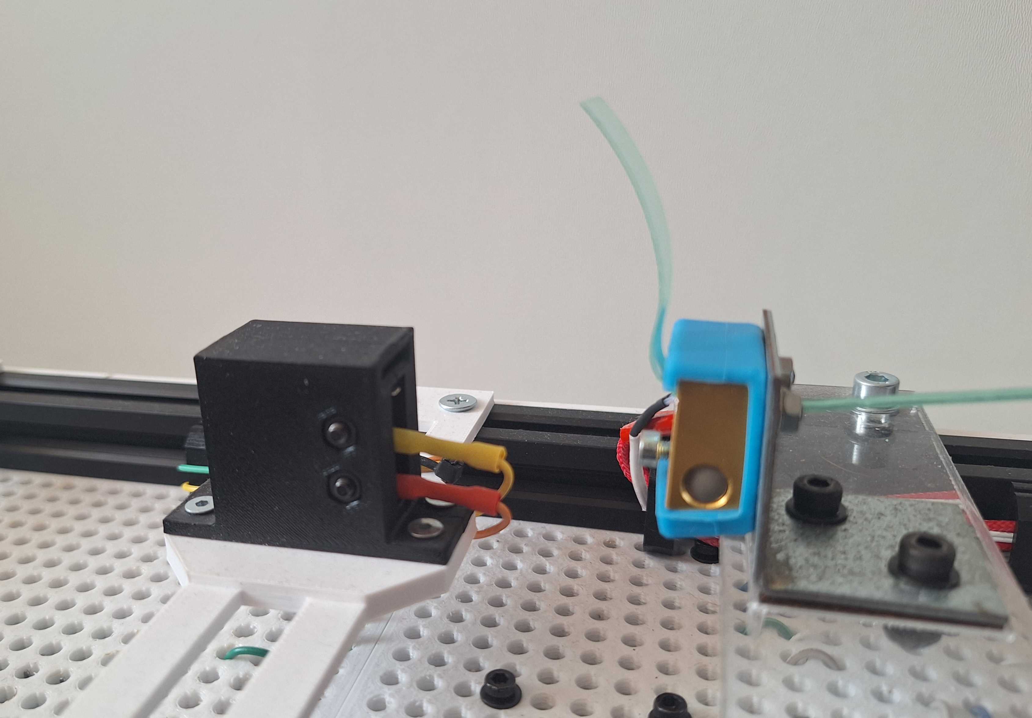 Pokus o výrobu externí svářečky hotových filamentů pomocí tělesa z tavné pistole selhal. Ukázalo se, že teplota tavení topného tělesa z tavné pistole (cca 190 °C) je pro svaření PET materiálu (potřeba >250 °C) nedostatečná.